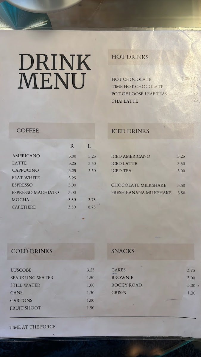 The menu at Time at the Forge boasts a delightful array of options that cater to a variety of tastes. Begin your day with a heartwarming hot chocolate or a soothing pot of loose leaf tea for just £3.75. If you're in the mood for something more adventurous, the chai latte at £3.25 is a must-try, balancing sweetness and spice perfectly.